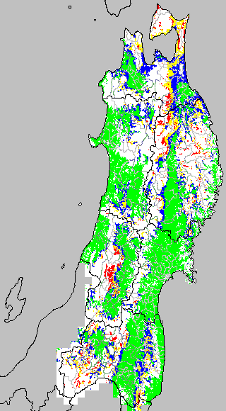 安全作期の策定にある気温指標のうち、中苗・成苗移植の安全早限日の気温指標13.0℃を用いて表示しています。13.0℃以下については1℃刻みで表示し、可能域がどのように推移するかをみるものです。