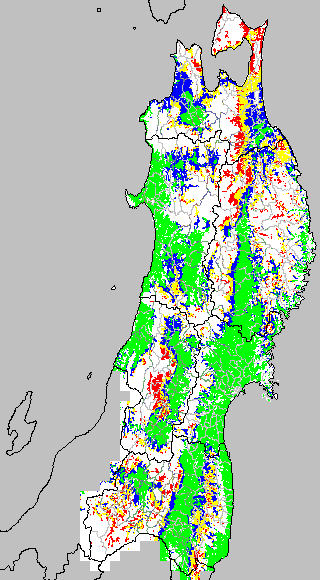安全作期の策定にある気温指標のうち、乾田直播の安全早限日の気温指標13.5℃を用いて表示しています。13.5℃以下については1℃刻みで表示し、可能域がどのように推移するかをみるものです。