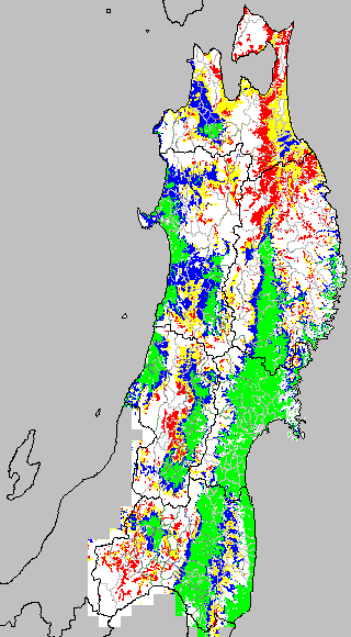 安全作期の策定にある気温指標のうち、中苗・成苗移植の安全早限日の気温指標13.0℃を用いて表示しています。13.0℃以下については1℃刻みで表示し、可能域がどのように推移するかをみるものです。