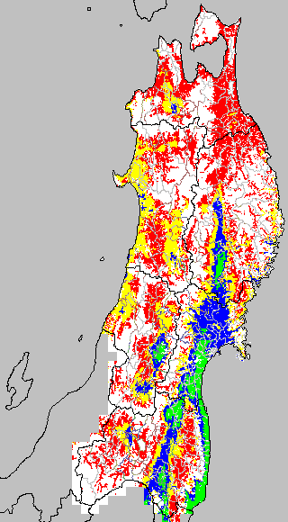 安全作期の策定にある気温指標のうち、乾田直播の安全早限日の気温指標13.5℃を用いて表示しています。13.5℃以下については1℃刻みで表示し、可能域がどのように推移するかをみるものです。