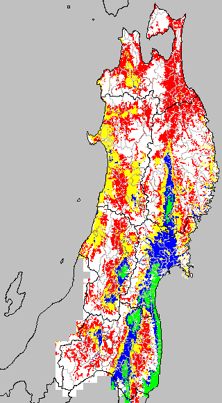 安全作期の策定にある気温指標のうち、乾田直播の安全早限日の気温指標13.5℃を用いて表示しています。13.5℃以下については1℃刻みで表示し、可能域がどのように推移するかをみるものです。
