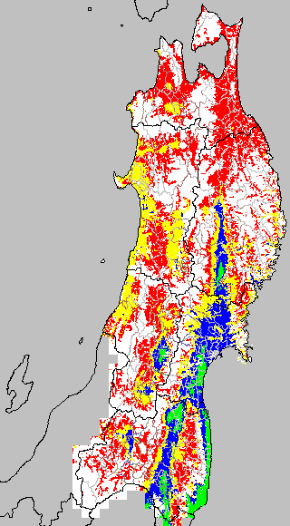 安全作期の策定にある気温指標のうち、乾田直播の安全早限日の気温指標13.5℃を用いて表示しています。13.5℃以下については1℃刻みで表示し、可能域がどのように推移するかをみるものです。