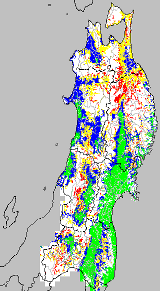 安全作期の策定にある気温指標のうち、稚苗移植の安全早限日の気温指標12.0℃を用いて表示しています。12.0℃以下については1℃刻みで表示し、可能域がどのように推移するかをみるものです。