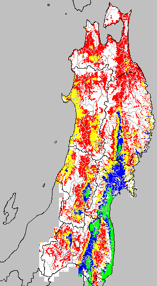 安全作期の策定にある気温指標のうち、乾田直播の安全早限日の気温指標13.5℃を用いて表示しています。13.5℃以下については1℃刻みで表示し、可能域がどのように推移するかをみるものです。