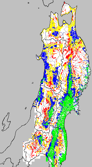 安全作期の策定にある気温指標のうち、中苗・成苗移植の安全早限日の気温指標13.0℃を用いて表示しています。13.0℃以下については1℃刻みで表示し、可能域がどのように推移するかをみるものです。