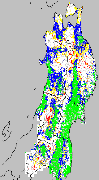 安全作期の策定にある気温指標のうち、中苗・成苗移植の安全早限日の気温指標13.0℃を用いて表示しています。13.0℃以下については1℃刻みで表示し、可能域がどのように推移するかをみるものです。