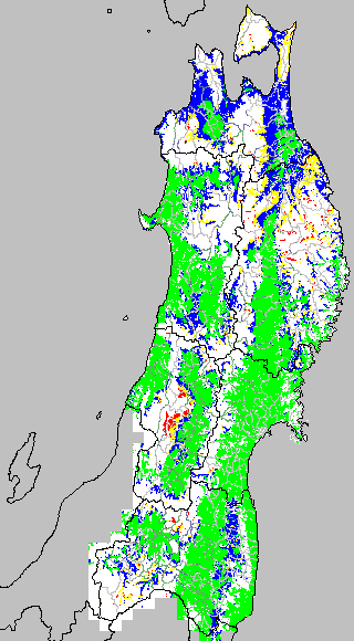 安全作期の策定にある気温指標のうち、中苗・成苗移植の安全早限日の気温指標13.0℃を用いて表示しています。13.0℃以下については1℃刻みで表示し、可能域がどのように推移するかをみるものです。