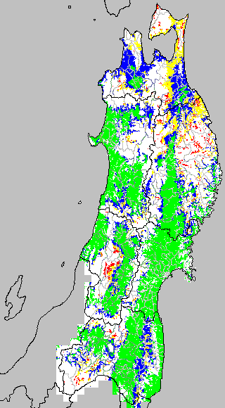 安全作期の策定にある気温指標のうち、乾田直播の安全早限日の気温指標13.5℃を用いて表示しています。13.5℃以下については1℃刻みで表示し、可能域がどのように推移するかをみるものです。