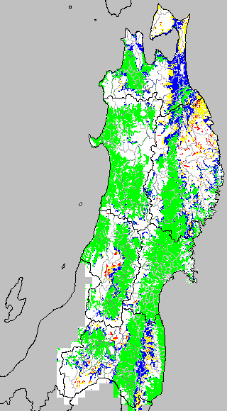 安全作期の策定にある気温指標のうち、中苗・成苗移植の安全早限日の気温指標13.0℃を用いて表示しています。13.0℃以下については1℃刻みで表示し、可能域がどのように推移するかをみるものです。