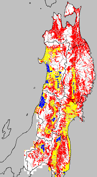 各種文献などを参考にして、分げつ形成に関する限界温度を平均気温で15℃と設定し、15℃以上については1℃刻みで表示します。過去7日の移動平均値で示す。分げつの形成が遅延すると予想される地域を監視するものです。