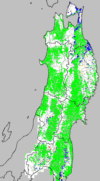 各種文献などを参考にして、草丈・根の伸長に関する限界温度を平均気温で13℃と設定し、13℃以上については1℃刻みで表示します。過去7日の移動平均値で示す。草丈や根の伸長が遅延すると予想される地域を監視するものです。