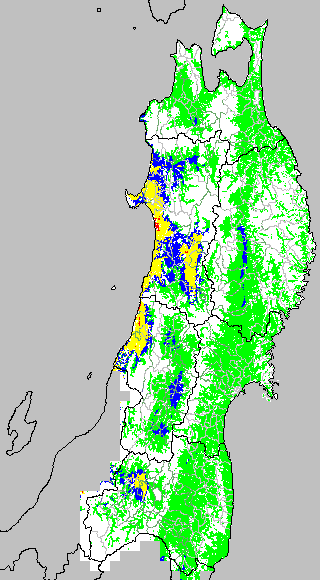 安全作期の策定にある気温指標のうち、いもち病蔓延可能日の平均気温指標20.0℃を用いて表示し、20.0℃未満については1℃刻みで表示します。過去7日の移動平均値で示しています。いもち病の蔓延可能域を監視するものです。葉いもち発生予察メッシュと併せてご覧ください。