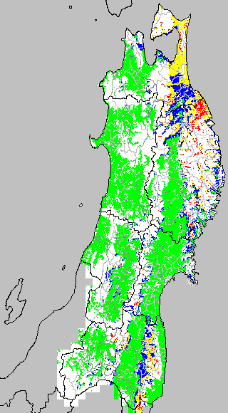 各種文献などを参考にして、草丈・根の伸長に関する限界温度を平均気温で13℃と設定し、13℃以上については1℃刻みで表示します。過去7日の移動平均値で示す。草丈や根の伸長が遅延すると予想される地域を監視するものです。