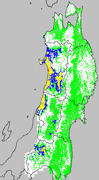 安全作期の策定にある気温指標のうち、いもち病蔓延可能日の平均気温指標20.0℃を用いて表示し、20.0℃未満については1℃刻みで表示します。過去7日の移動平均値で示しています。いもち病の蔓延可能域を監視するものです。葉いもち発生予察メッシュと併せてご覧ください。