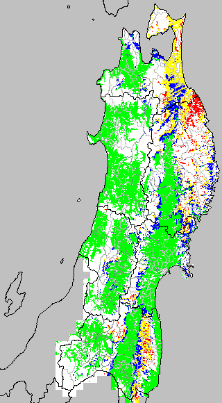 各種文献などを参考にして、草丈・根の伸長に関する限界温度を平均気温で13℃と設定し、13℃以上については1℃刻みで表示します。過去7日の移動平均値で示す。草丈や根の伸長が遅延すると予想される地域を監視するものです。