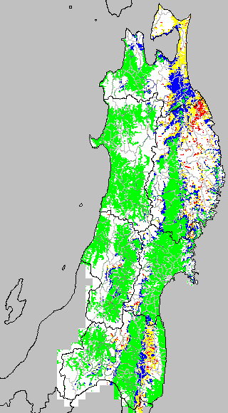 各種文献などを参考にして、草丈・根の伸長に関する限界温度を平均気温で13℃と設定し、13℃以上については1℃刻みで表示します。過去7日の移動平均値で示す。草丈や根の伸長が遅延すると予想される地域を監視するものです。