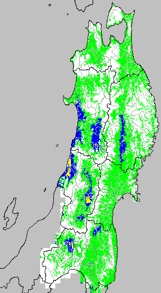 安全作期の策定にある気温指標のうち、いもち病蔓延可能日の平均気温指標20.0℃を用いて表示し、20.0℃未満については1℃刻みで表示します。過去7日の移動平均値で示しています。いもち病の蔓延可能域を監視するものです。葉いもち発生予察メッシュと併せてご覧ください。