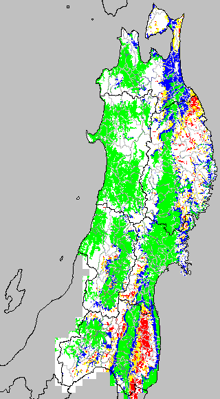 各種文献などを参考にして、分げつ形成に関する限界温度を平均気温で15℃と設定し、15℃以上については1℃刻みで表示します。過去7日の移動平均値で示す。分げつの形成が遅延すると予想される地域を監視するものです。