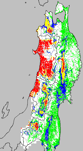 葉いもち蔓延可能域