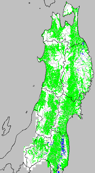 各種文献などを参考にして、草丈・根の伸長に関する限界温度を平均気温で13℃と設定し、13℃以上については1℃刻みで表示します。過去7日の移動平均値で示す。草丈や根の伸長が遅延すると予想される地域を監視するものです。