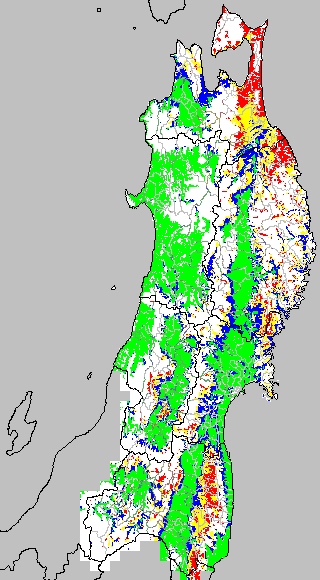 冷却量は((日平均気温−20℃)の積算値)で得られる指標である。この値が負でかつ数値が大きいほど低温の程度が大きくなり、低温被害が大きくなると推定される。この気温指標は前7日間の移動平均値を基に変換して示す。