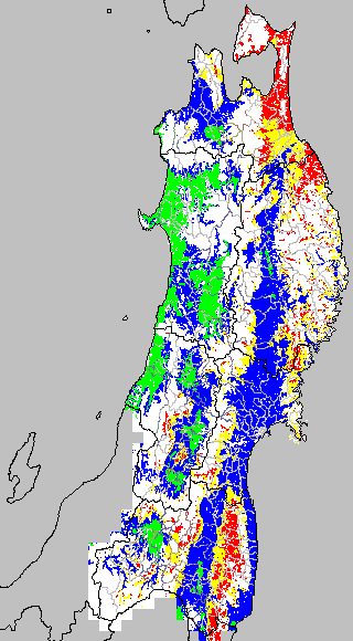 冷却量は((日平均気温−20℃)の積算値)で得られる指標である。この値が負でかつ数値が大きいほど低温の程度が大きくなり、低温被害が大きくなると推定される。この気温指標は前7日間の冷却量を積算して示す。
