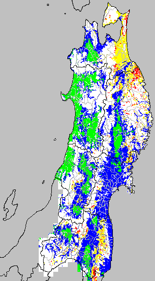 冷却量は((日平均気温−20℃)の積算値)で得られる指標である。この値が負でかつ数値が大きいほど低温の程度が大きくなり、低温被害が大きくなると推定される。この気温指標は前7日間の冷却量を積算して示す。