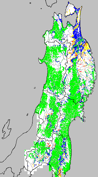 冷却量は((日平均気温−20℃)の積算値)で得られる指標である。この値が負でかつ数値が大きいほど低温の程度が大きくなり、低温被害が大きくなると推定される。この気温指標は前7日間の移動平均値を基に変換して示す。