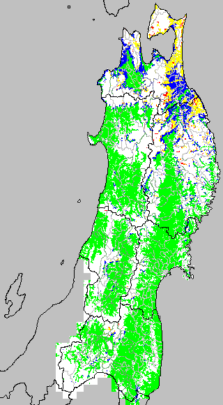 冷却量は((日平均気温−20℃)の積算値)で得られる指標である。この値が負でかつ数値が大きいほど低温の程度が大きくなり、低温被害が大きくなると推定される。この気温指標は前7日間の移動平均値を基に変換して示す。