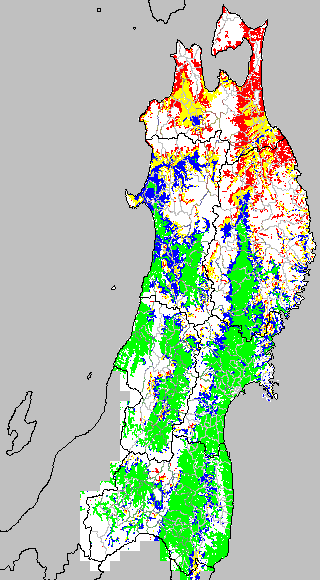この時期平均気温が20℃以下になると、低温障害が発生しやすくなる。そこで、20℃を限界気温として、深水管理の必要な地域を特定する。また、平均気温が20〜21℃の地域も特に前歴深水管理を行う方が望ましい。この気温指標は前7日間の移動平均値で示す。