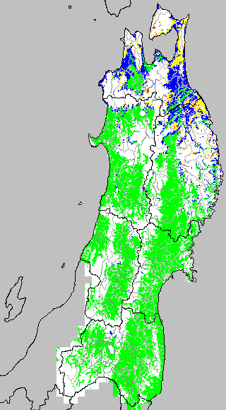 冷却量は((日平均気温−20℃)の積算値)で得られる指標である。この値が負でかつ数値が大きいほど低温の程度が大きくなり、低温被害が大きくなると推定される。この気温指標は前7日間の移動平均値を基に変換して示す。
