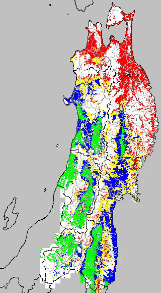 この時期平均気温が20℃以下になると、低温障害が発生しやすくなる。そこで、20℃を限界気温として、深水管理の必要な地域を特定する。また、平均気温が20〜21℃の地域も特に前歴深水管理を行う方が望ましい。この気温指標は前7日間の移動平均値で示す。
