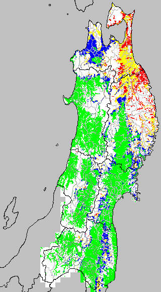 冷却量は((日平均気温−20℃)の積算値)で得られる指標である。この値が負でかつ数値が大きいほど低温の程度が大きくなり、低温被害が大きくなると推定される。この気温指標は前7日間の移動平均値を基に変換して示す。