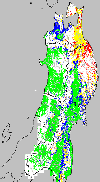 冷却量は((日平均気温−20℃)の積算値)で得られる指標である。この値が負でかつ数値が大きいほど低温の程度が大きくなり、低温被害が大きくなると推定される。この気温指標は前7日間の移動平均値を基に変換して示す。