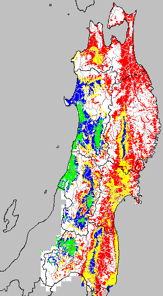 この時期平均気温が20℃以下になると、低温障害が発生しやすくなる。そこで、20℃を限界気温として、深水管理の必要な地域を特定する。また、平均気温が20〜21℃の地域も特に前歴深水管理を行う方が望ましい。この気温指標は前7日間の移動平均値で示す。