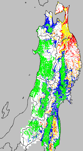 冷却量は((日平均気温−20℃)の積算値)で得られる指標である。この値が負でかつ数値が大きいほど低温の程度が大きくなり、低温被害が大きくなると推定される。この気温指標は前7日間の移動平均値を基に変換して示す。