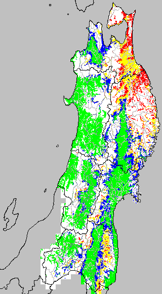 冷却量は((日平均気温−20℃)の積算値)で得られる指標である。この値が負でかつ数値が大きいほど低温の程度が大きくなり、低温被害が大きくなると推定される。この気温指標は前7日間の移動平均値を基に変換して示す。