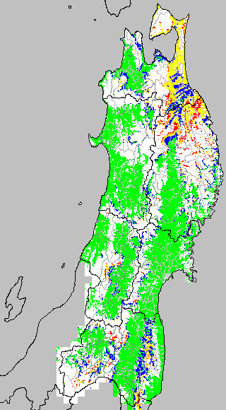この時期平均気温が20℃以下になると、低温障害が発生しやすくなる。そこで、20℃を限界気温として、深水管理の必要な地域を特定する。また、平均気温が20〜21℃の地域も特に前歴深水管理を行う方が望ましい。この気温指標は前7日間の移動平均値で示す。