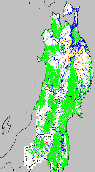 この時期平均気温が20℃以下になると、低温障害が発生しやすくなる。そこで、20℃を限界気温として、深水管理の必要な地域を特定する。また、平均気温が20〜21℃の地域も特に前歴深水管理を行う方が望ましい。この気温指標は前7日間の移動平均値で示す。