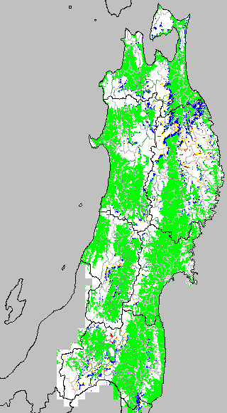 この時期平均気温が20℃以下になると、低温障害が発生しやすくなる。そこで、20℃を限界気温として、深水管理の必要な地域を特定する。また、平均気温が20〜21℃の地域も特に前歴深水管理を行う方が望ましい。この気温指標は前7日間の移動平均値で示す。