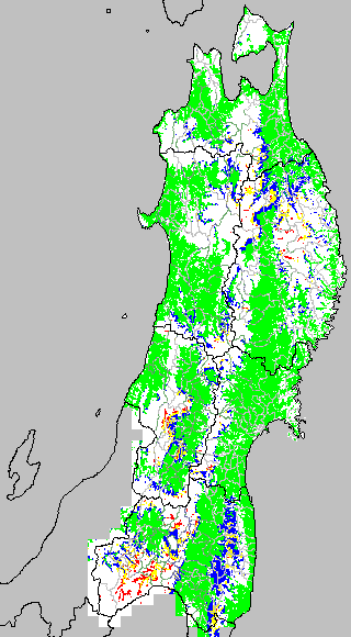 この時期平均気温が20℃以下になると、低温障害が発生しやすくなる。そこで、20℃を限界気温として、深水管理の必要な地域を特定する。また、平均気温が20〜21℃の地域も特に前歴深水管理を行う方が望ましい。この気温指標は前7日間の移動平均値で示す。
