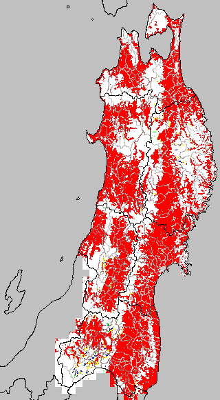 安全作期の策定にある気温指標のうち、いもち病蔓延可能日の平均気温指標20.0℃を用いて表示し、20.0℃未満については1℃刻みで表示します。過去7日の移動平均値で示しています。いもち病の蔓延可能域を監視するものです。葉いもち発生予察メッシュと併せてご覧ください。