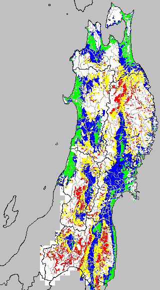 この時期平均気温が20℃以下になると、低温障害が発生しやすくなる。そこで、20℃を限界気温として、深水管理の必要な地域を特定する。また、平均気温が20〜21℃の地域も特に前歴深水管理を行う方が望ましい。この気温指標は前7日間の移動平均値で示す。