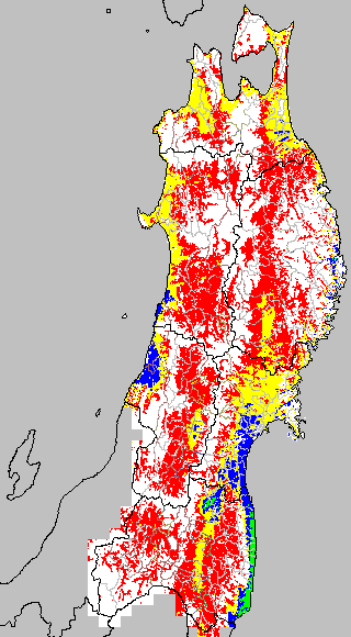 安全作期の策定にある気温指標のうち、夏作物の生育可能な気温指標10℃を用いて表示しています。10℃以下については1℃刻みで表示し、可能域がどのように推移するかをみるものです。