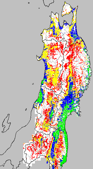 安全作期の策定にある気温指標のうち、夏作物の生育可能な気温指標10℃を用いて表示しています。10℃以下については1℃刻みで表示し、可能域がどのように推移するかをみるものです。