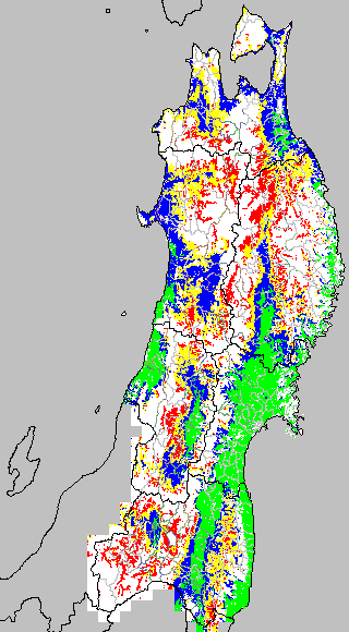 安全作期の策定にある気温指標のうち、夏作物の生育可能な気温指標10℃を用いて表示しています。10℃以下については1℃刻みで表示し、可能域がどのように推移するかをみるものです。