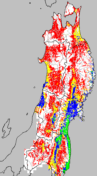 安全作期の策定にある気温指標のうち、湛水直播の安全早限日の気温指標11.5℃を用いて表示しています。11.5℃以下については1℃刻みで表示し、可能域がどのように推移するかをみるものです。