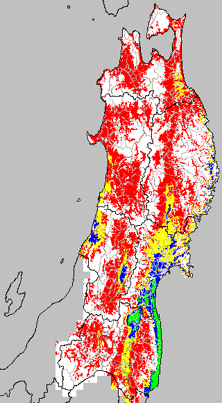 安全作期の策定にある気温指標のうち、稚苗移植の安全早限日の気温指標12.0℃を用いて表示しています。12.0℃以下については1℃刻みで表示し、可能域がどのように推移するかをみるものです。