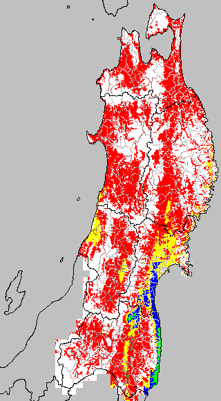安全作期の策定にある気温指標のうち、中苗・成苗移植の安全早限日の気温指標13.0℃を用いて表示しています。13.0℃以下については1℃刻みで表示し、可能域がどのように推移するかをみるものです。