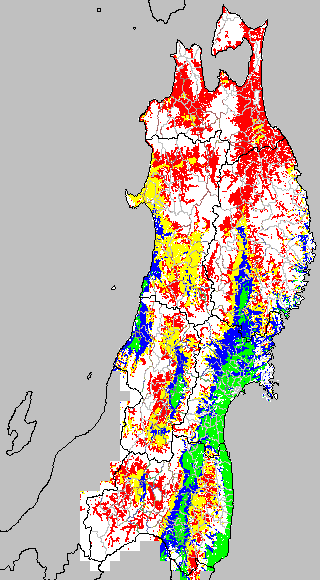 安全作期の策定にある気温指標のうち、夏作物の生育可能な気温指標10℃を用いて表示しています。10℃以下については1℃刻みで表示し、可能域がどのように推移するかをみるものです。